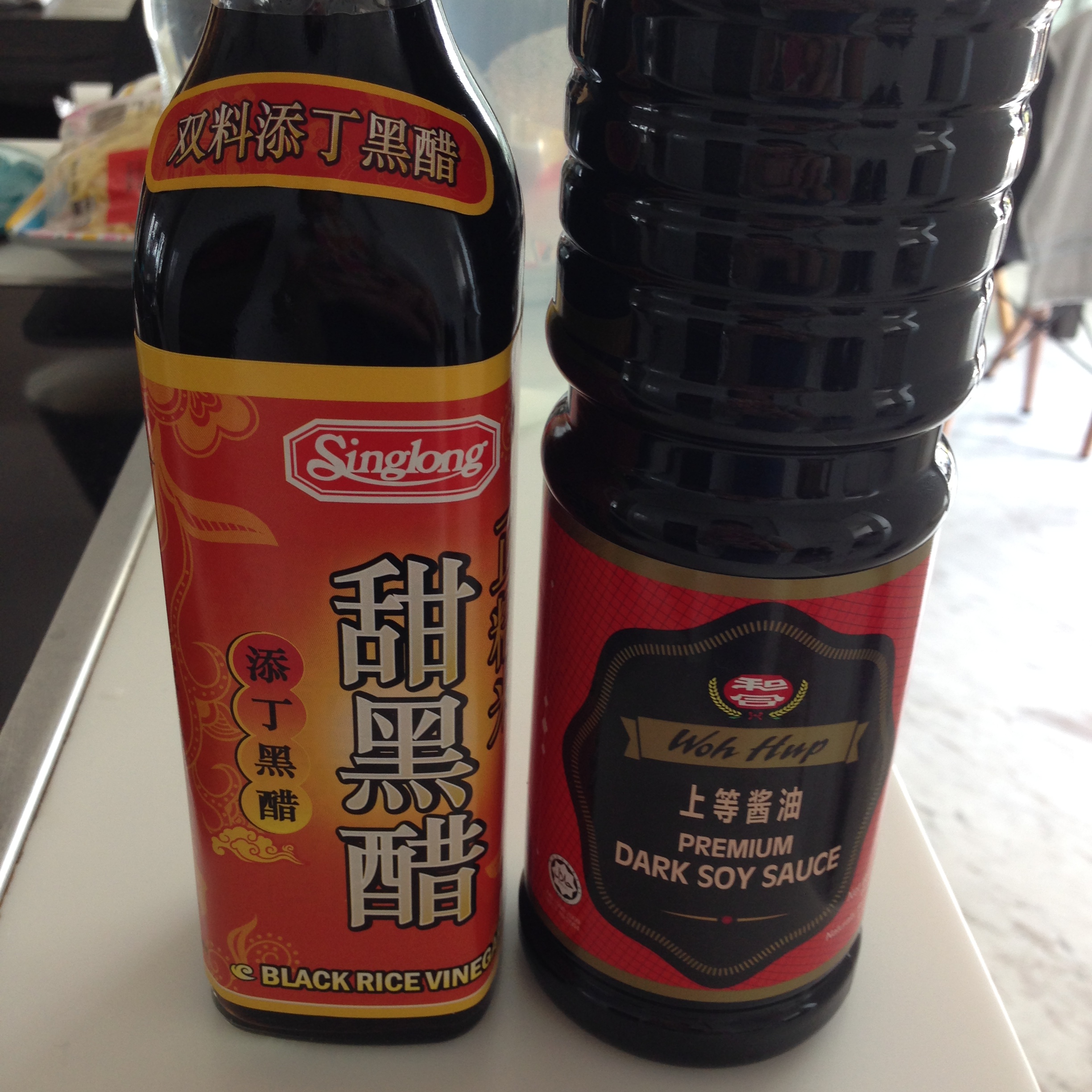 5. Add 3 cups of water and 1 cup of black vinegar and bring the remaining stock to a boil.
