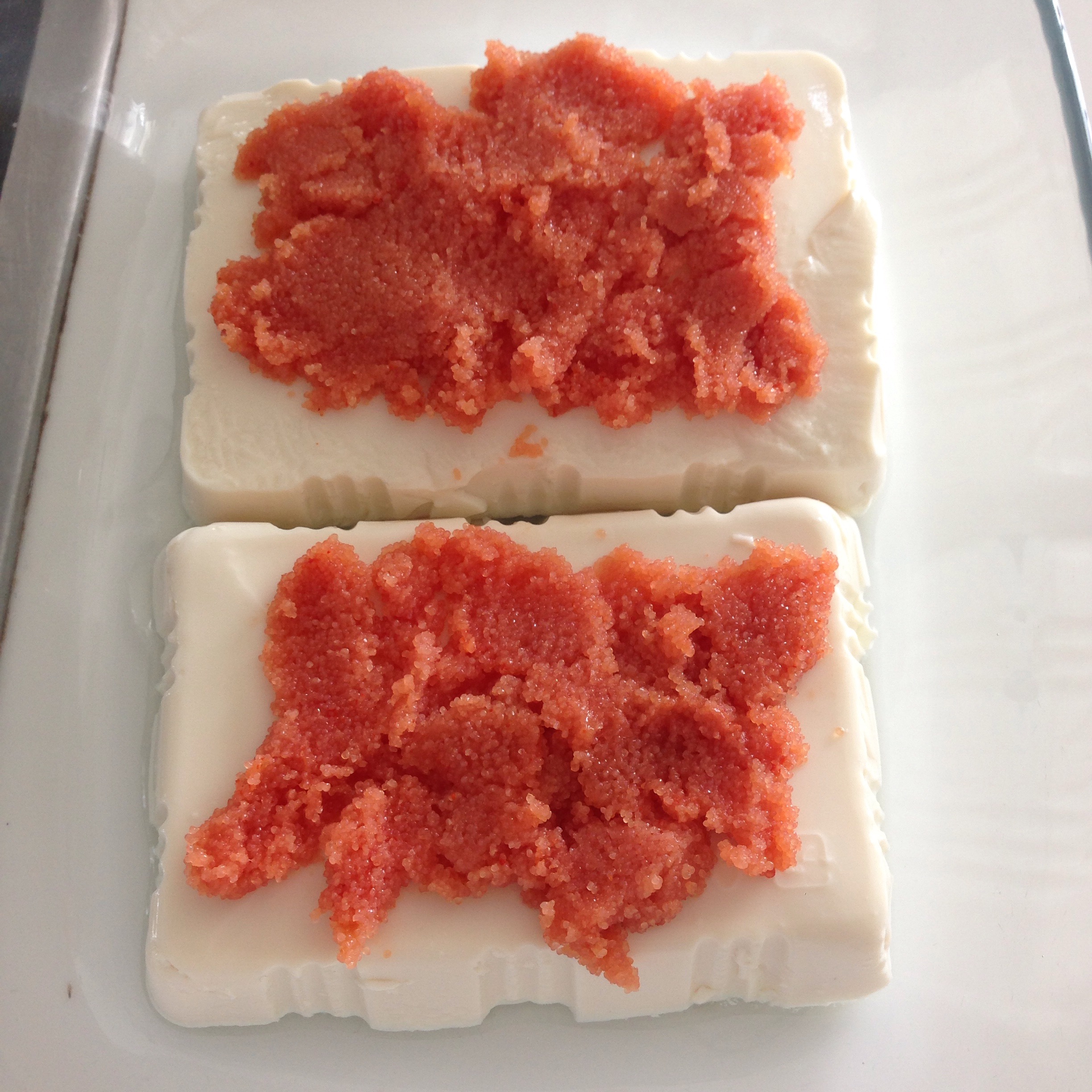 Step 2: Mentaiko topping on tofu