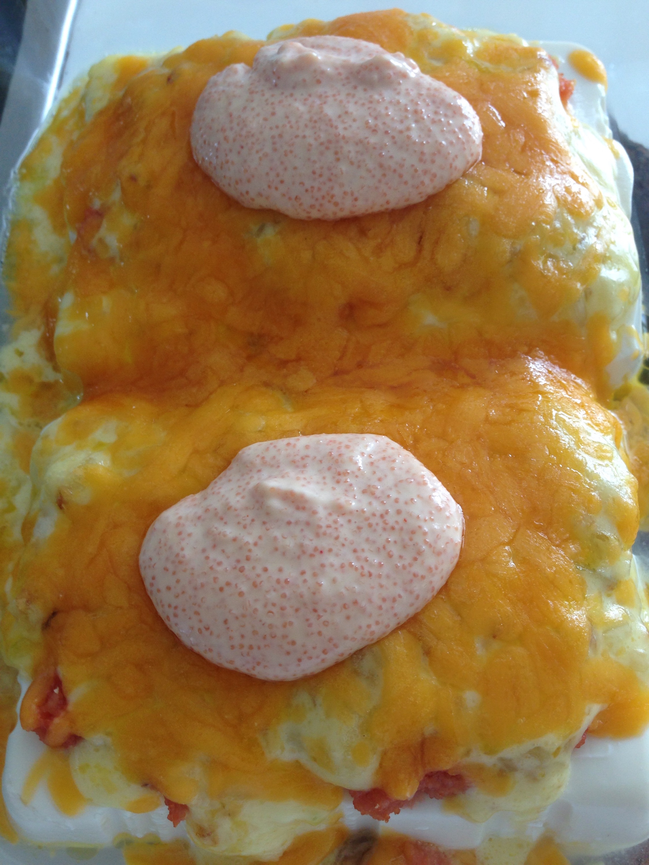 - Remove from oven. Mix the remaining mentaiko with the Japanese mayonnaise and top each piece of cheesy tofu gratin with a dollop of mentaiko mayonnaise.