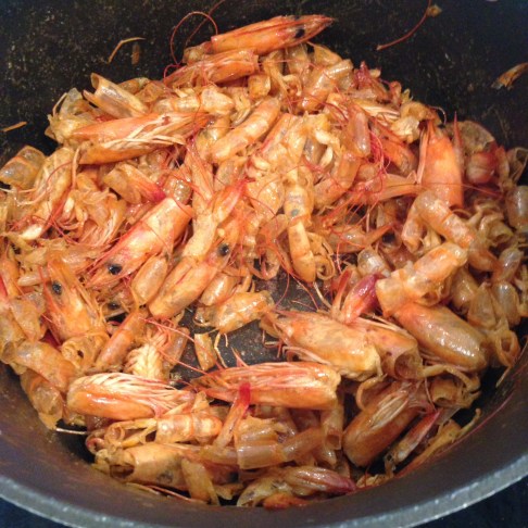 frying prawn shells