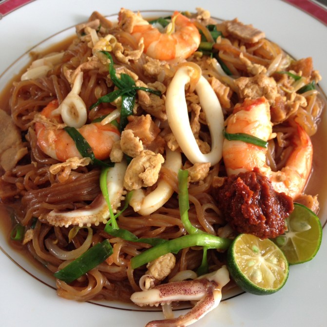 I remember years ago when I was doing my post-doctoral fellowship in NY, I really missed local food. And the Chinese food offered in the US is nothing like what I was used to. I remember the first time being truly horrified at being offered a bolster-sized egg roll…ewwww!  Nothing like the tiny, crispy spring rolls we used to enjoy back home. This led to me deciding to try to make Hokkien Mee by myself (aided and abetted by Sharon, another good friend and great cook who lived in NY). I had found a second hand recipe book called “Favourite Asian Meals” by Dorothy Ng, a really old school cook book which usually tells you to add Mix A to Marinade B to Mix C. In those days there were no online recipes of South East Asian dishes. Anyway that experiment was the single successful local dish that we made during our attempts to stave off food homesickness.