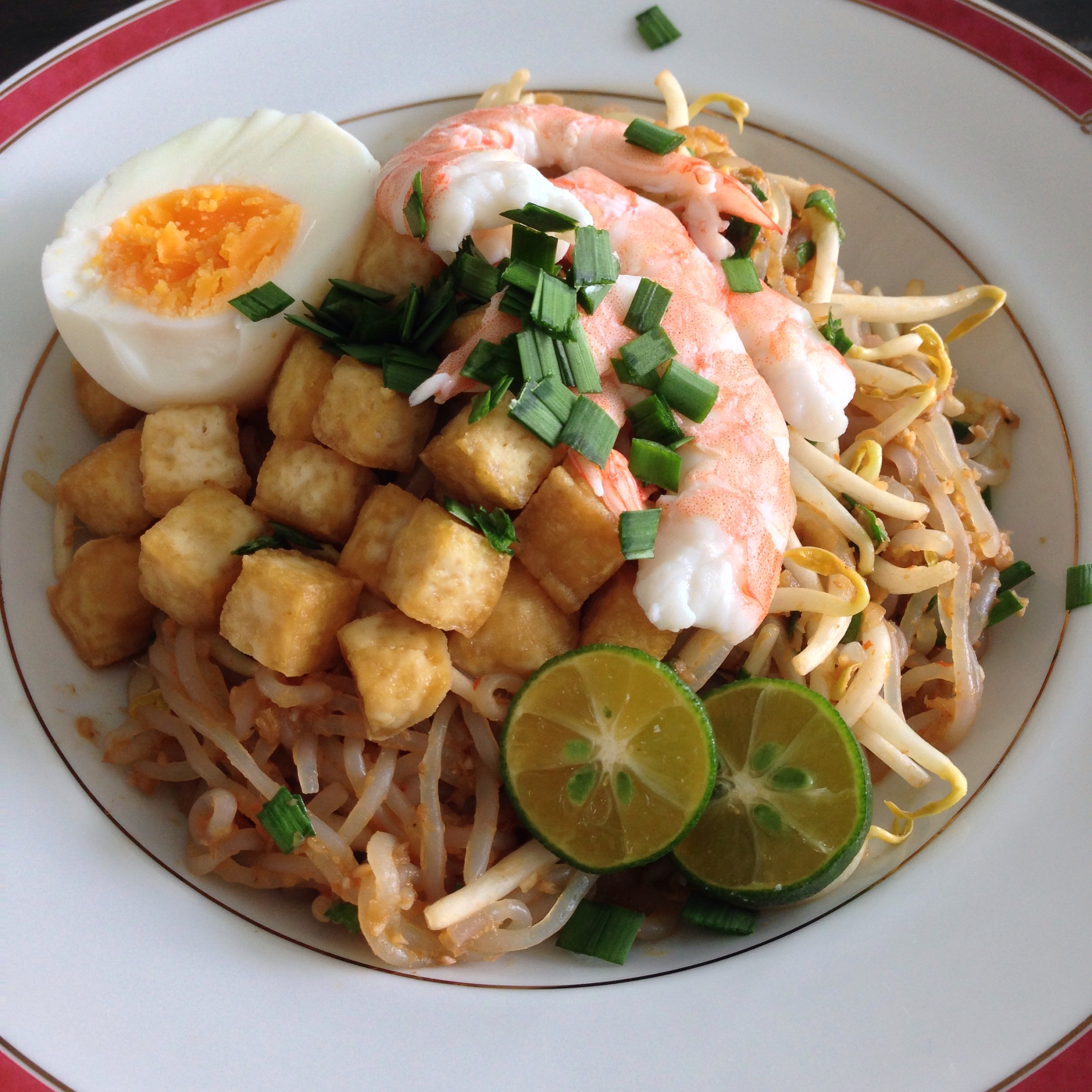 - Plate the noodles in 6 plates, and top each plate with half an egg, fried tofu, prawns! fried shallots and the rest of the chives. Serve hot.