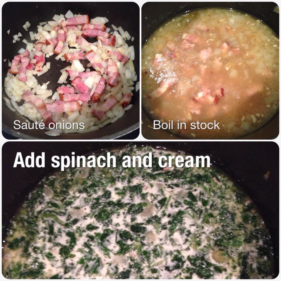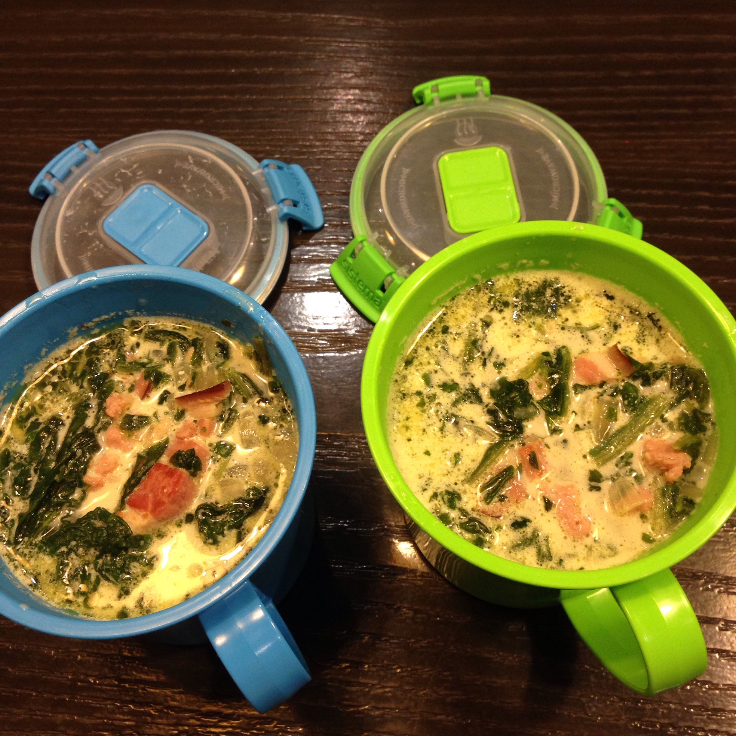 - Add the cream and spinach and stir through. Boil for just 5 minutes. Serve hot or pack in soup mugs and refrigerate for the next day.