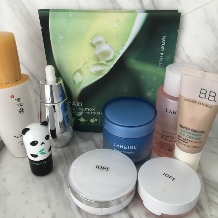Ok I admit it. I haven’t gotten over my Korean food cravings yet. I’m embarrassed to say that I’m enamoured of all things Korean at the moment…and still unpacking all those cosmetics I splurged on in Seoul. But I kid you not, 1 week of using these facial products and I can see and feel visible changes to my skin. Of course, I confess that before this, I was a simple face wash and moisturizer girl so all this stuff is destined to show definite differences anyway. I felt like a true bumpkin when I googled Korean facial care and discovered that it is a 10-12 step daily process! How I’ve survived in the past I have no idea. My family is less than impressed however, because last week I made kid#1 wait at the bus stop for me for 1/2 hour because I had just put on my snail mask and refused to walk out of the house with it on still. It was dark, ok, and I didn’t want to scare the neighbors.
