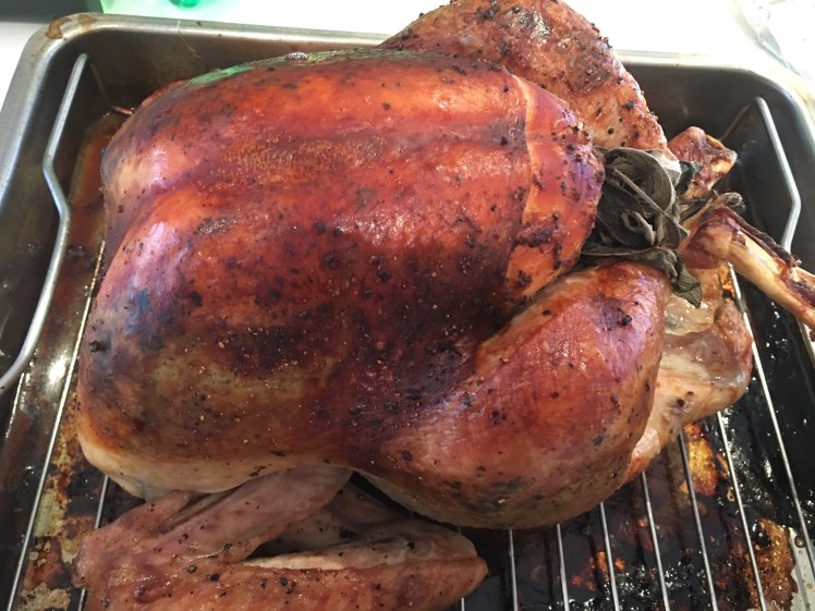 The verdict? Not bad at all. The only thing was that I kept a bit of pancetta in the turkey gravy, which would probably be less chunky than if I used bacon instead. The pictures in this post are of a really small turkey (the smallest I’ve ever roasted; only 5 kg heavy bird; compared to the almost 9 kg one I have right now). The wonderful thing about this recipe is that nothing changes except perhaps the roasting time, which a leave-in meat thermometer would accurately reflect.