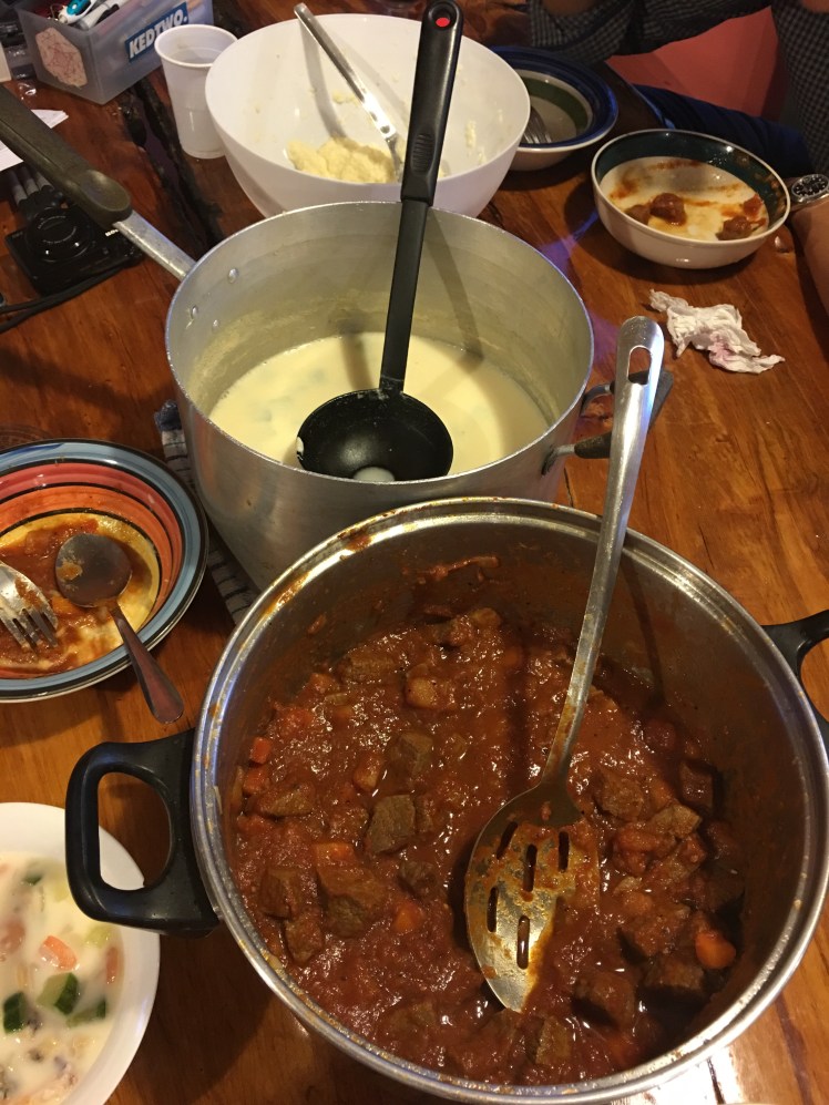 Kid #2 gamely wade into the mess and helped to figure out how to use an ancient blender for our cauliflower mash and we ended up being able to make a decent beef stew, cauliflower mash and seafood chowder. By now most people would have wondered why we didn’t just eat out at the local cafe instead of struggling with cooking but the truth is that most of us were eating low carb and the usual fish and chips fare would not have worked out for us.