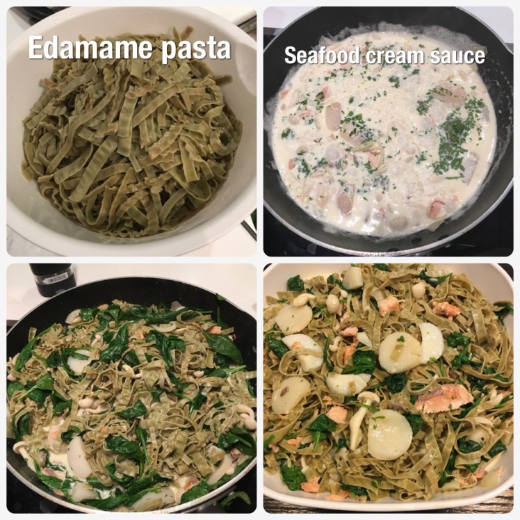 I usually have lots of standby food in the pantry. I intermittently try out low carb pastas for the times I get sick of shirataki noodles. It is not easy to find a truly low carb pasta. I was severely let down by Dreamfield’s pasta which is an absolute con. It is not actually low carb but a slow release pasta and is absolutely not suitable for people who need to control their sugars. Unfortunately a lot of low carb pastas which are truly low carb actually taste like cardboard. One recent discovery I had was an organic edamame pasta that was relatively low carb and still tasted like pasta. There is of course a more vegetable-y flavor to it but it was not unpleasant or unpalatable.