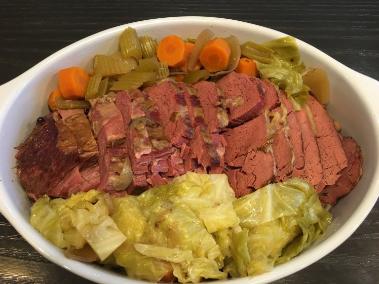 Kid#2 just had her braces tightened again. She has been living off milo, jelly and a banana chocolate chip cake that Uncle E baked for her. So a soft meal was on the cards. Kid#1 on the other hand has been unwell with sinusitis and reactive lymphadenopathy and we had run a couple of blood tests which showed borderline anemia. So we’ve also been trying to increase his iron intake with red meat. So corned beef and cabbage was definitely on the cards.