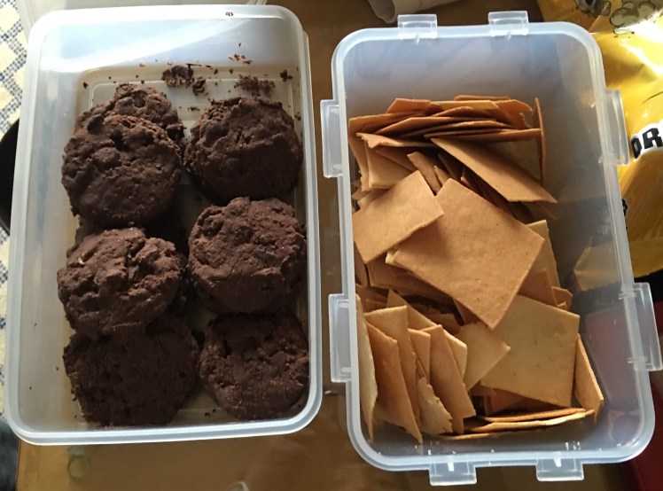 Low carb snacks galore – world peace cookies (left) and homemade cheese crackers (right).
