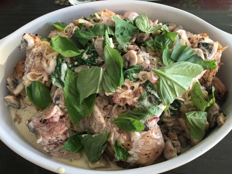 So one of the things I had on this week was a dinner thanksgiving for a bunch of women that I have been working with for the past few years. Truly amazing people, all precious gems and jewels in their own right. I think I over-cooked for the occasion, but it was fun although I do have enough food to last at least 3 days (even with giving away a good portion to my in laws as well). When cooking for a large gathering I like to choose dishes that can be spaced out – the recipe below was actually doubled for the occasion, and it was great that the chicken could be roasted in the morning and the sauce in the afternoon, just before the party, it freed up the oven to do other things. This chicken dish reminds me a little of the roasted chicken in cream sauce served at the Poulet restaurants.