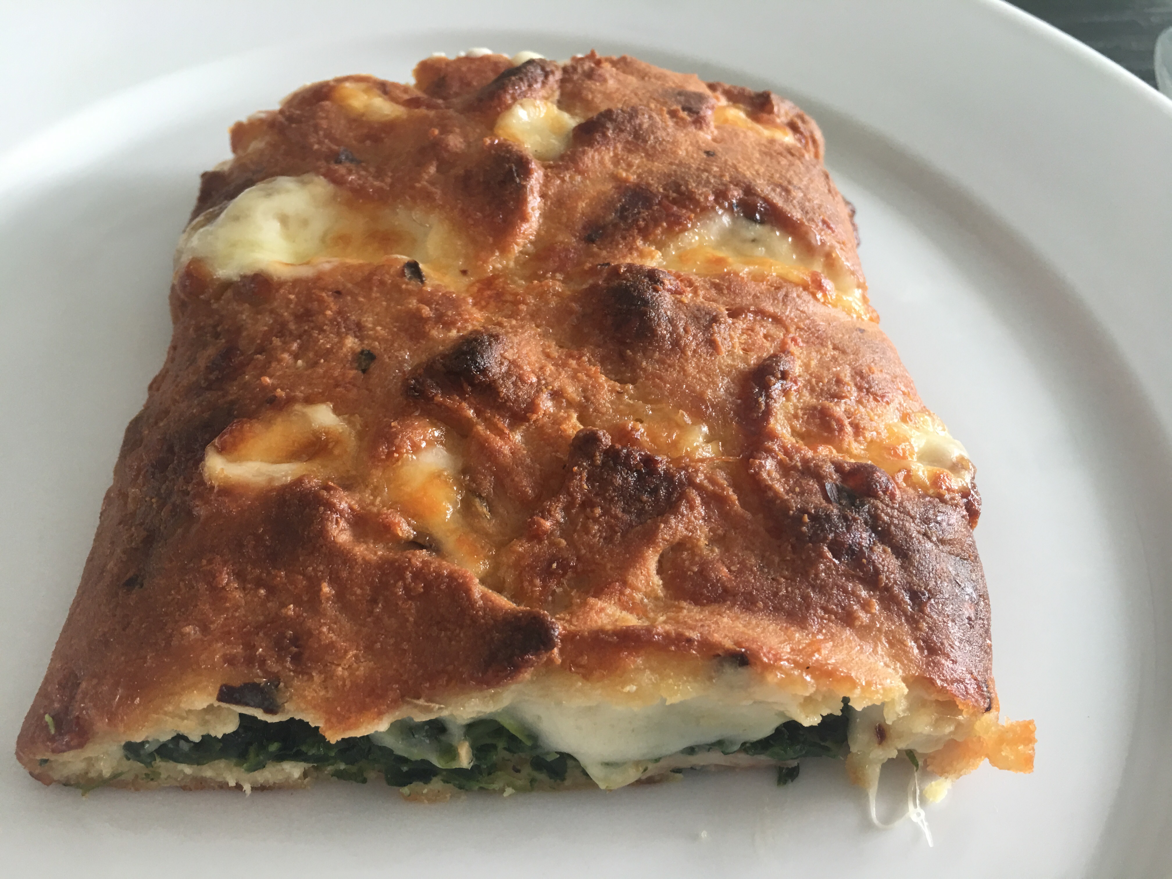 So for those who think that the low carb life is unpleasant, undoable or unsustainable, here’s a recipe to meet those cravings. Stromboli is nothing but a turnover, very similar to a calzone except that the calzone is shaped like a crescent (a giant empanada or curry puff) and the Stromboli is rectangular. The fillings are similar to what you would expect to see on a pizza. The dough recipe is not novel but is from uplateanyway, but has been adapted slightly as I think the microwave method is too uneven and preparing the dough on the stove gives a better consistency. I really love spinach too and this is a great way of incorporating fiber into the meal.