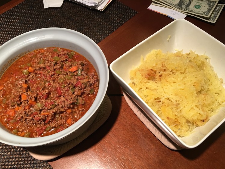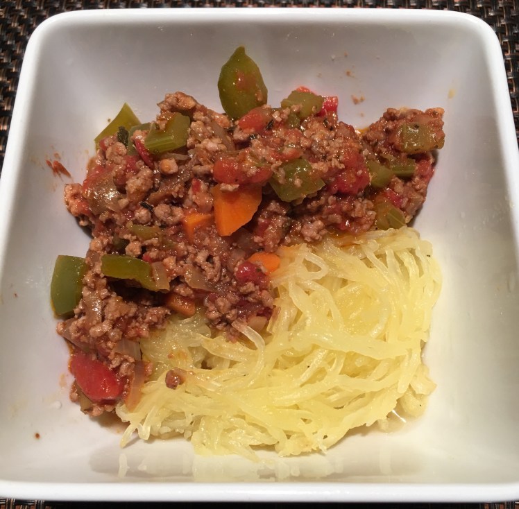 The sauce was a slightly different take from my usual thing, given that I didn’t have wine and balsamic vinegar on hand, but I did pop in some Lily’s dark chocolate to make the meat sauce a little sweeter and richer.