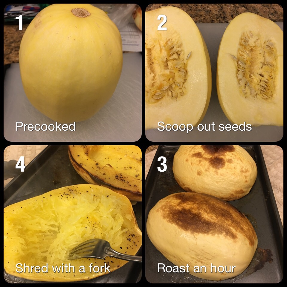 - Remove from oven and with a fork, gently shred the flesh of the squash. This comes away easily in fine shreds. Place in a bowl and set aside.