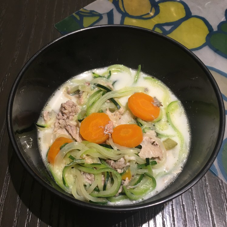To be honest, I was still kind of tired out and I wasn’t in the mood to make a complicated meal. It was good to dump the frozen chicken into the pot and get a hearty chicken zoodle soup for us. The zoodles, or zucchini noodles, were a nice noodle substitute and made the soup light and refreshing. The meal was cooked in between having the IT guy set up my wifi and the electrician redo the wiring for my microwave/convection oven. Super easy and effort free. My electrician couldn’t get over the fact that I had a multifunction oven that could do microwave, grill and convection/fan bake. I pointed out that I had the Instant Pot with 7 functions of sautéing, pressure cooking, steaming, yoghurt making, rice or porridge making, slow cooking and warming. I realized how technology has made the kitchen more streamlined, which is good since I now have to work out of a tiny kitchen.