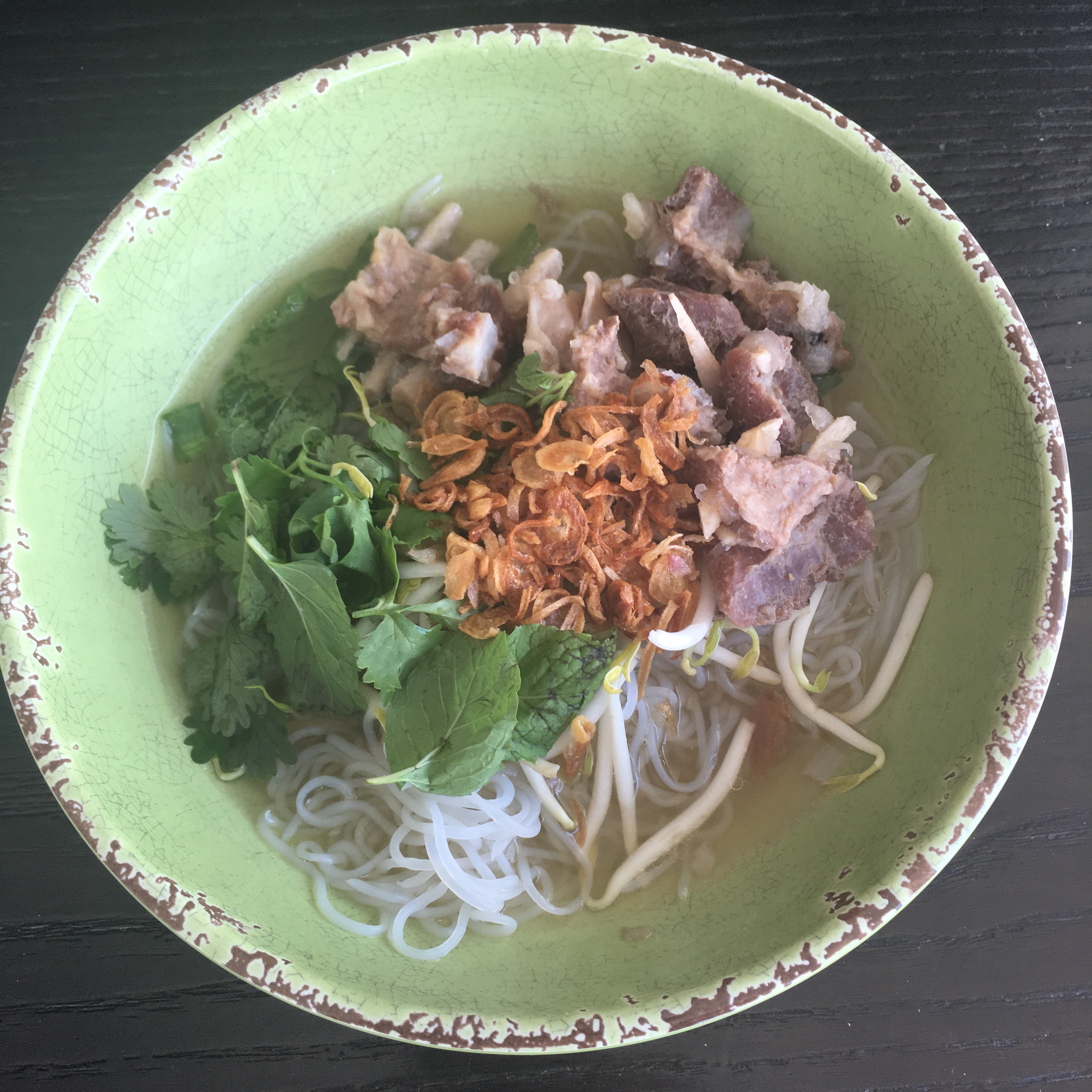 So I guess it’s not about the conditions – I certainly have been through worse…I just need to get used to a different place and style of doing things. Regardless, similar to my previous place, I still have groups of people tromping through regularly and I had to get used to cooking in the kitchen fast. So for my most recent mentoring group session I decided to make use of the Instant Pot to make a breakfast noodle soup. The Instant Pot is my one constant and it’s been a reliable pal in the kitchen. This recipe is Vietnamese inspired and uses pork instead of beef to make a kind of pho. It does need forward planning to marinate the pork beforehand, but this literally took only an hour or so to prepare, so I was well able to potter around the house doing other things while the Instant Pot strutted it’s stuff. So here is a comforting pork rib noodle soup recipe; and an easy cook for a crowd of people.