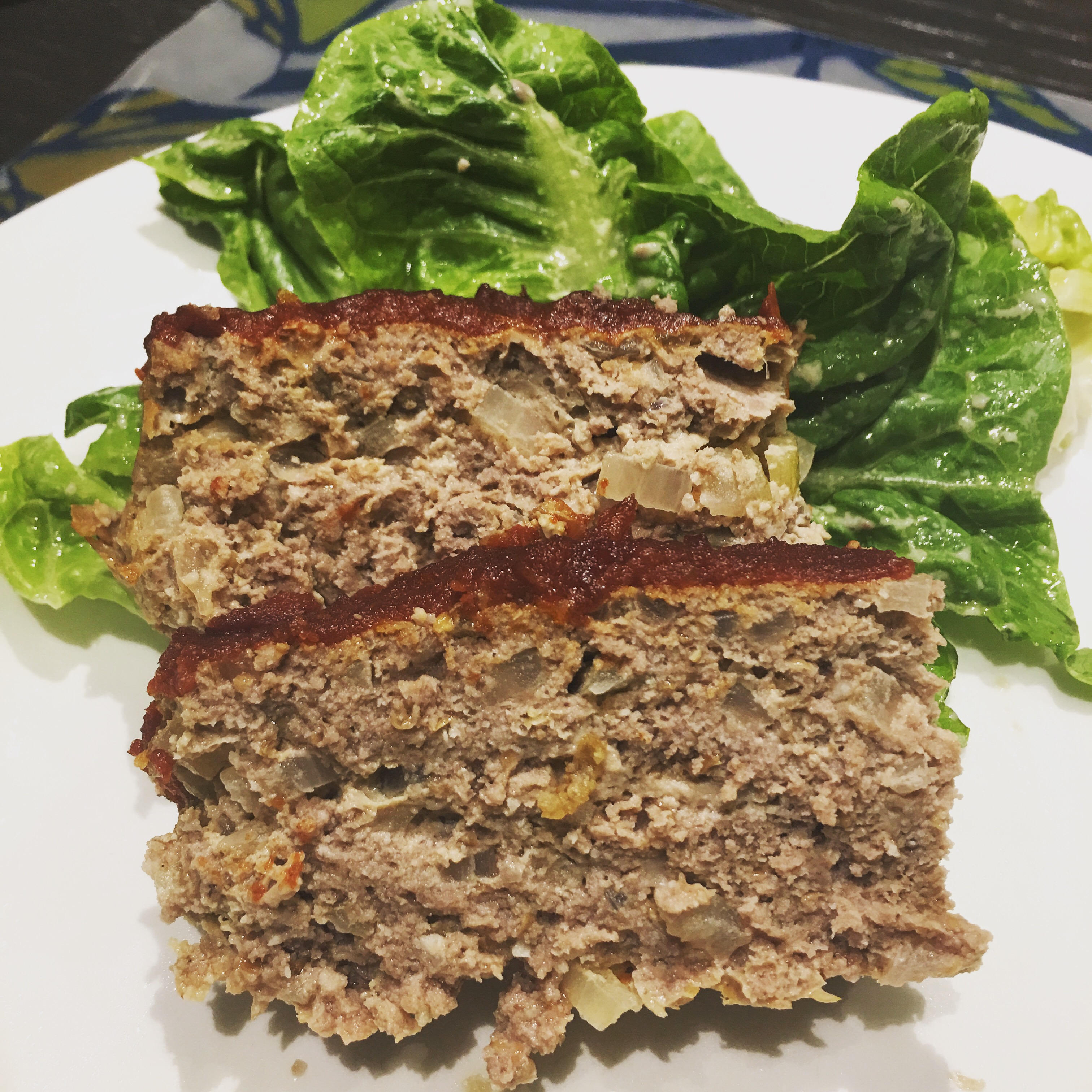 But recently I had discovered All Day I Dream About Food’s BBQ sauce. This is an amazing sauce with sweetness and zing and a generous glug of bourbon whisky. What’s not to like about that? The other puzzle I had to work through was the meatloaf itself. Meatloaf would be rock hard with ground beef only and usually needs a binder as well as something like breadcrumbs to break up the solidness of meat. In the past I had learned to use flaxseed meal and almond flour as bread substitutes and so I replicated this in the meatloaf.