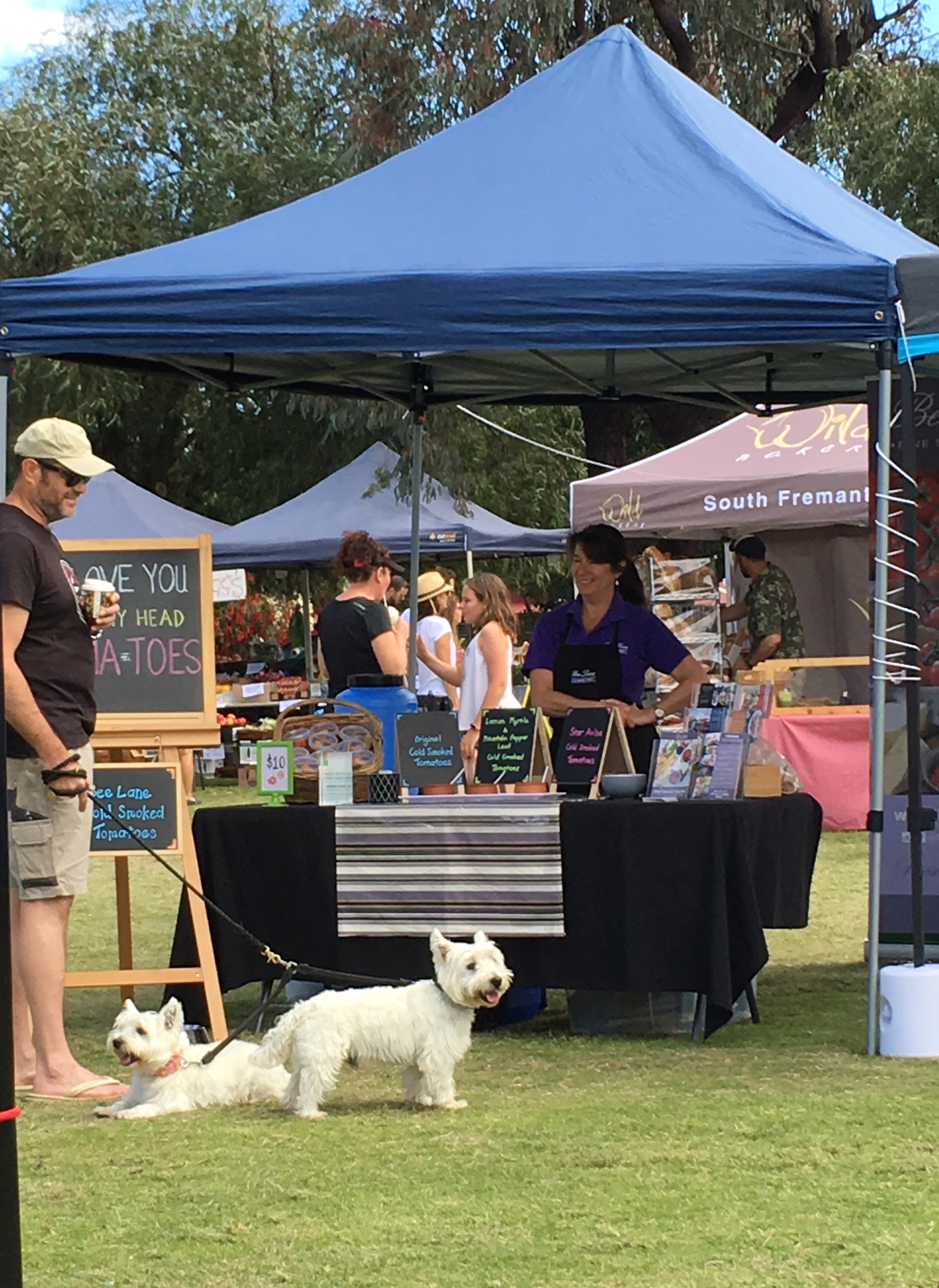 Kyilla Farmers’ Market was great for produce and dog watching!