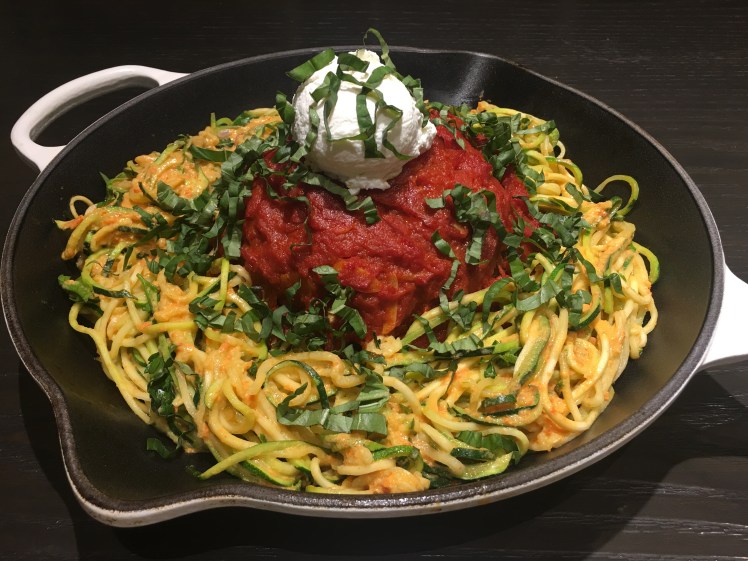 Anyway this is the kind of dish that gives a huge visual impact, so after making the meatball and marinara sauce, I quickly sautéed some zoodles and arranged it around the big momma meatball to make it look like an ostrich egg in a nest. I thought it looked rather pretty in the end and it was an instagrammable food picture!