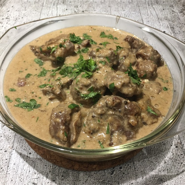 My family members are universally beef lovers and oxtail stew is a hot favourite for them. But kid#2 is really not big on curry as she’s pretty spice averse and also she’s just about to start on her year end exams and I didn’t want to send her into a new week with an upset tummy. So I made a super mild korma curry with the oxtail. Kormas are probably the mildest of Indian curries and feature coriander, cumin and cardamom as the main spices. The yogurt and cream that finishes it off is of course what nullifies any smidgen of spiciness. I took inspiration from the korma recipe from Genius kitchen.