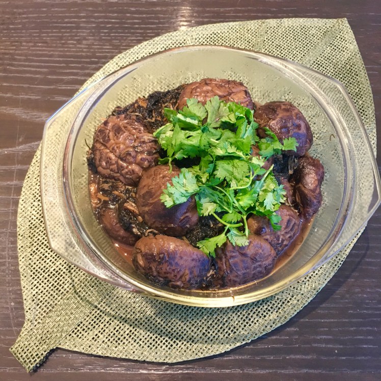Braised mushrooms is a quintessentially Chinese New Year dish. This is because one of the ingredients is fatt choy or black moss, which is a kind of ground algae that when named in Cantonese, sounds like “striking it rich”. Word sounds play it big among superstitious Chinese – for example one of the wishes we greet people with 年年有余 (niannianyouyu) is also represented by fish (鱼 Yu) and so fish is a must-have at CNY meals.