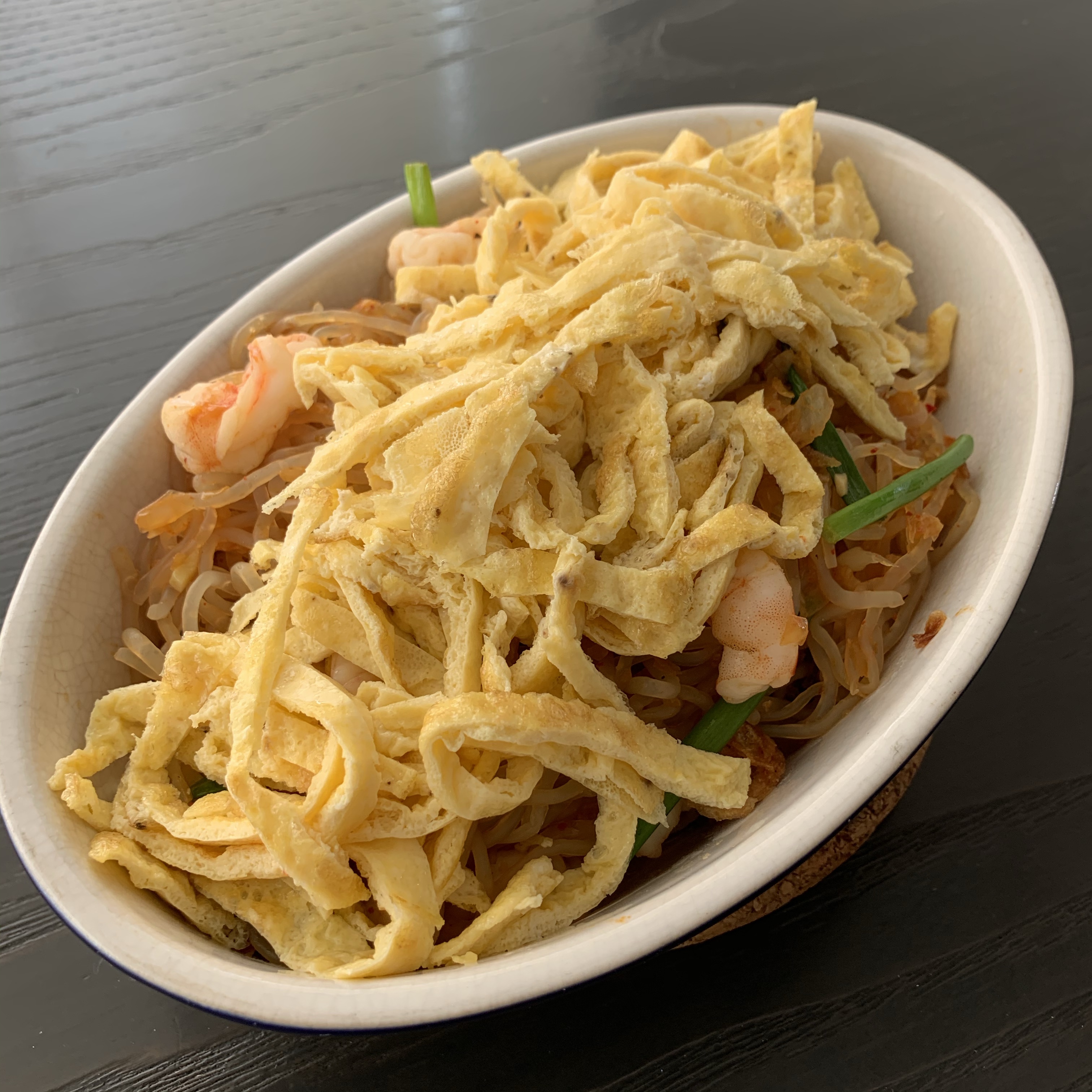 - Remove from heat and put into a serving bowl. Top the noodles with the omelet strips. Serve hot.