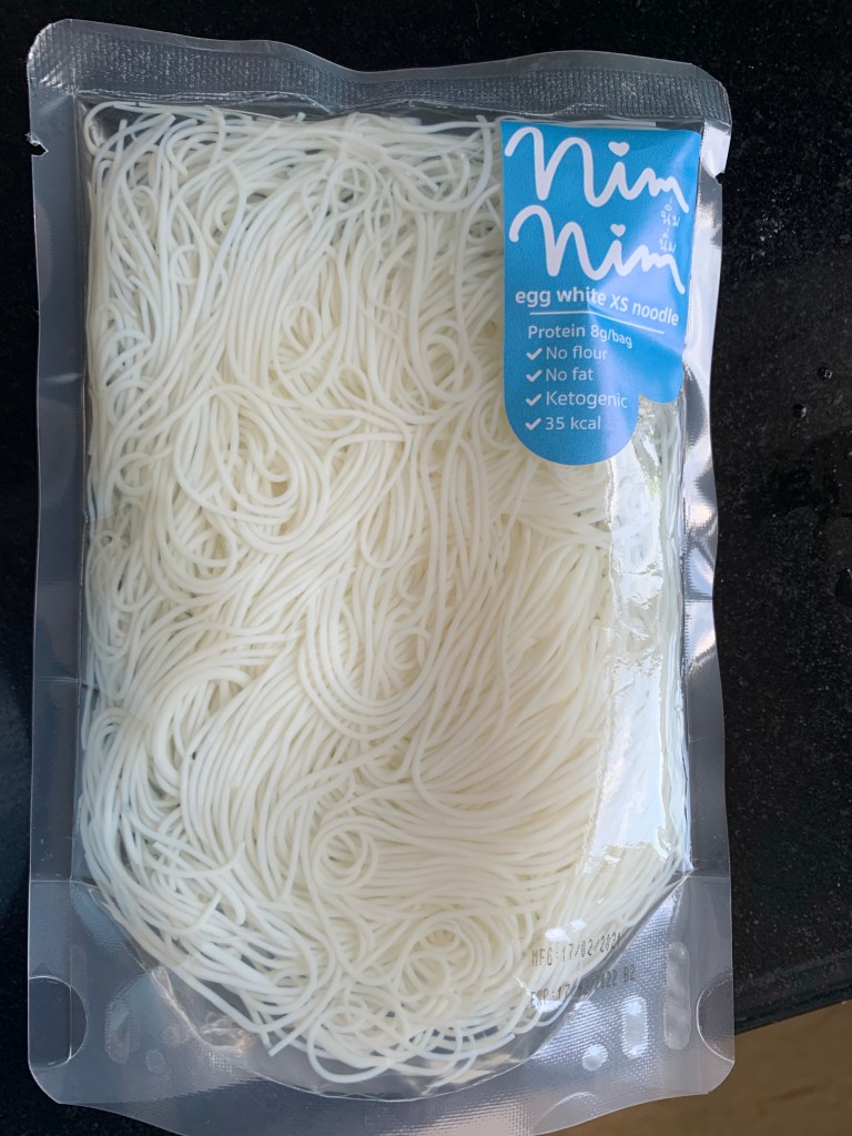 It was on a rare “alone” day at home that I could indulge myself. I had recently bought some egg white noodles from Umami Keto. I had ordered the udon style noodles, but the vendor kindly threw in 2 bags of vermicelli style egg white noodles to try. When I looked at the bags of thin noodles, I instantly had a craving for white seafood bee hoon which has been all the rage in Singapore for the past few years but I was never able to eat it. So this recipe was an experiment but a very happy and successful one.