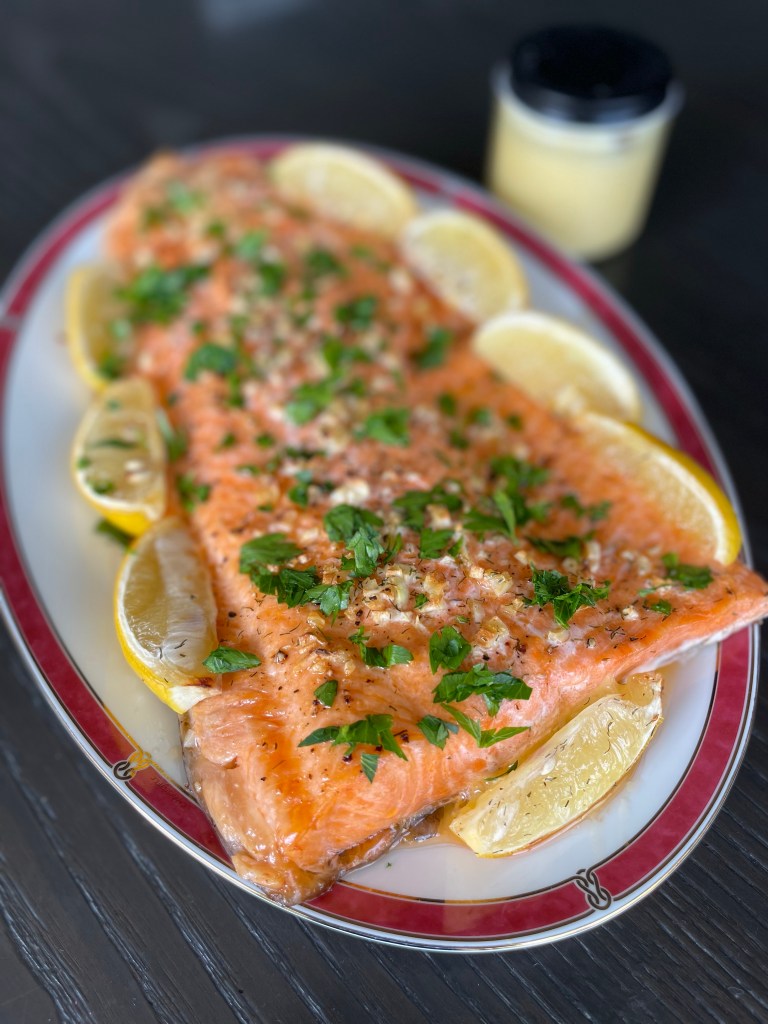 So yes, salmon has been on my mind lately, and it’s been all manner of ways to make salmon…I think my recent best effort was to bake a whole salmon fillet – this recipe by Jessica Gavin was the bomb! And it went amazingly well with hollandaise sauce that I had made for poached eggs in the morning.