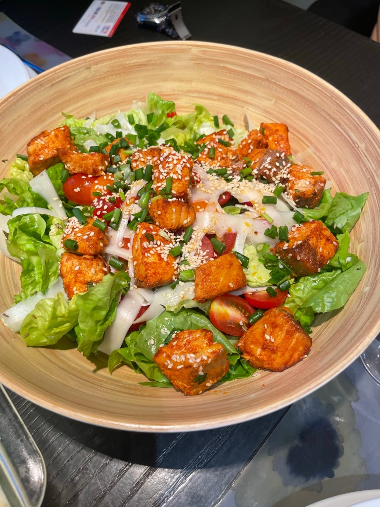 - 400-500g of salmon fillets cur into 1 inch cubes